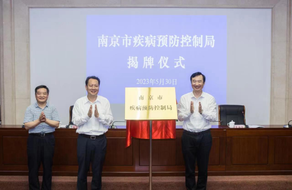 5月30日下午,南京市疾病预防控制局正式挂牌成立。市政府副秘书长唐伯才出席仪式并讲话,市委编办副主任张士凯,市卫生健康委主任、党委书记夏海鸣等领导出席揭牌仪式。