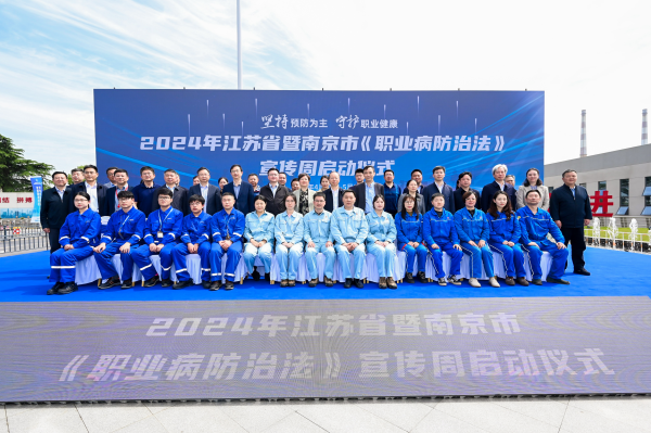 4月25日至5月1日是全国第22个《职业病防治法》宣传周,今年宣传周的主题是“坚持预防为主,守护职业健康”。4月24日上午,宣传周启动仪式在江北新区举行,省卫生健康委副主任周明浩、南京市政府副秘书长戴兴海、中石化健康安全环保部健康管理室副总经理王坤、南京市卫生健康委副主任王安琴、江北新区卫生健康和民政局局长陆小军出席。